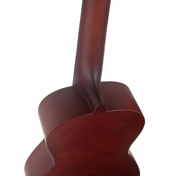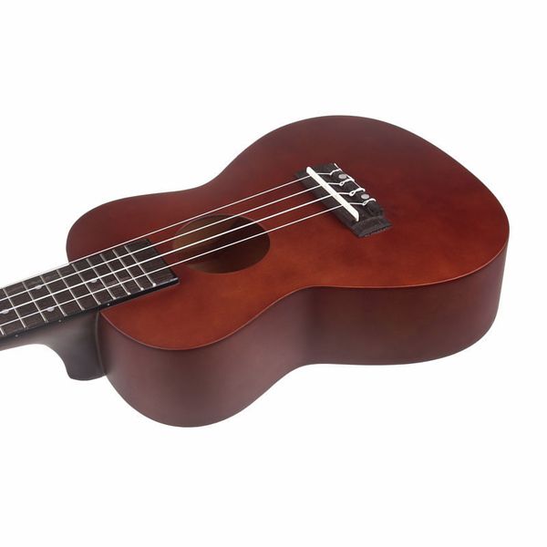 This lovely instrument is your gateway to concert-format ukuleles, with a 15.1 inch scale length that not only gives you more space on the fretboard but also a slightly fuller sound that goes beyond the typical tones you’d expect from standard ukes. The robust basswood body in matte brown is tough enough to withstand the odd knock, while the maple neck and roseacer fretboard use quality woods from from non-tropical sources.